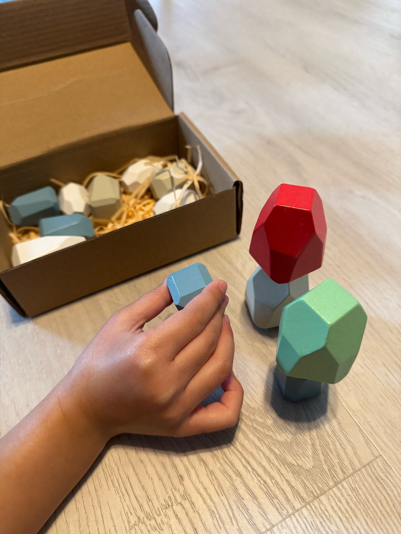 Unsere Montessori Holzstapelsteine sind das perfekte Lernspielzeug für Kinder im Vorschulalter. Sie fördern spielerisch Kreativität, Feinmotorik und logisches Denken. Durch das Stapeln und Balancieren der unterschiedlich geformten Steine lernen Kinder Geduld, Konzentration und Problemlösungsfähigkeiten.