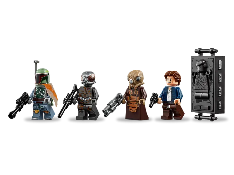 • Das Set enthält 4 LEGO® Star Wars™ Minifiguren: Boba Fett, Han Solo, Zuckuss und 4-LOM sowie eine Bonus-Minifigur von Prinzessin Leia und eine Präsentationsplatte zum 20. Jubiläum.