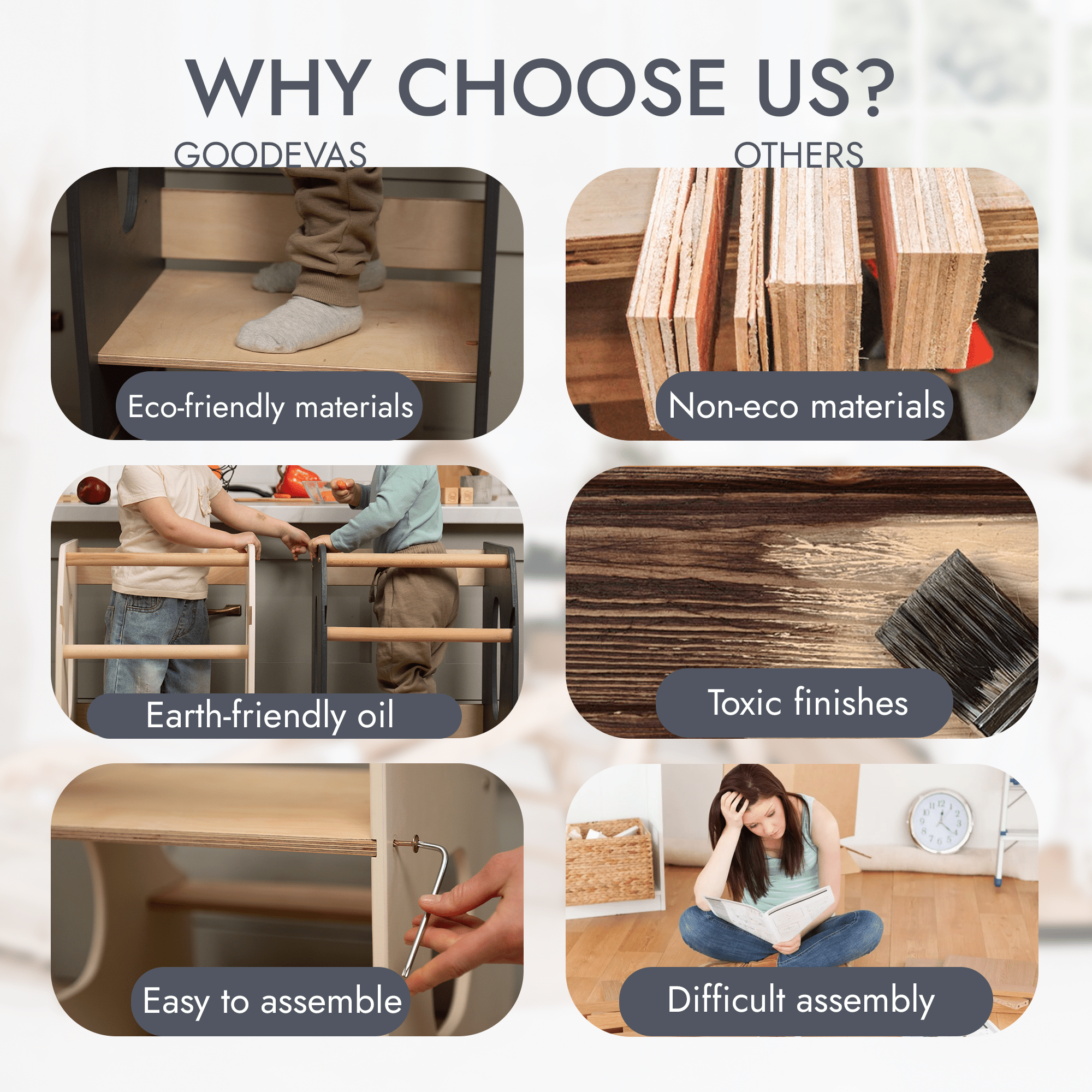 Sicher und stabil: Gefertigt aus robusten Materialien, bietet der Lernturm maximale Stabilität und Schutz. Die solide Konstruktion verhindert ein Wackeln, während seitliche Sicherheitsleisten zusätzliche Sicherheit gewährleisten.
